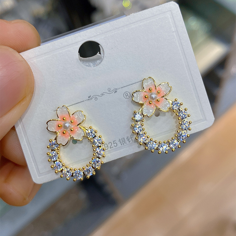 ロマンチックなピンクの桜の甘いイヤリングの流行のロマンチックな耳飾りの耳の穴のない耳のクリップの日本の大衆のデザイン感は通勤します。
