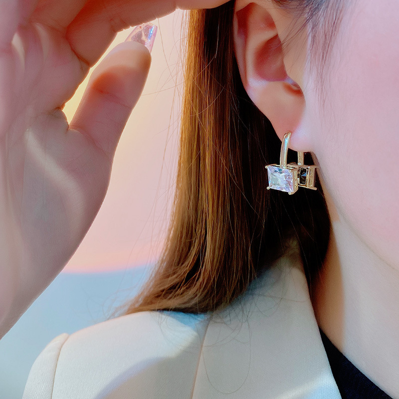 軽くて豪華な超閃光の両面の2つの四角の耳のボタンの女性のファッションの韓国のネットの赤い同項の高級感の耳飾りの気質のイヤリング