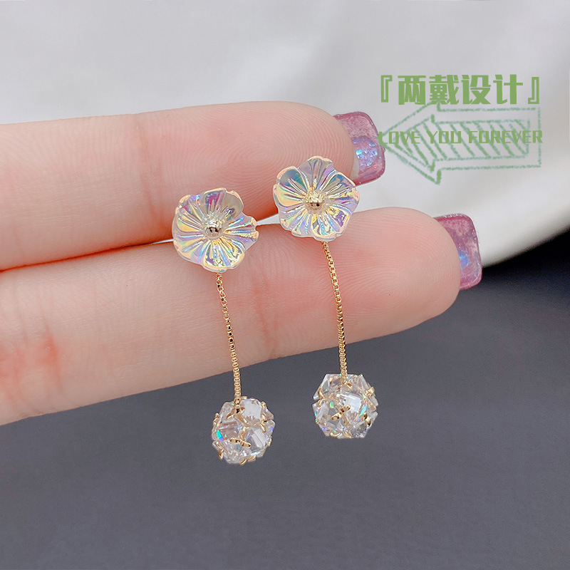 ファッション的で洗練された超フラッシュ五弁花ドリルのロングイヤリング女性S925純銀針の個性的なイヤリング