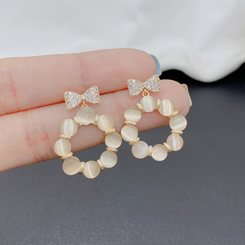 猫の目の石の蝶結びのイヤリングの女性の小衆の通勤の百合のピアスs 925純銀の針の個性の気質の韓国版の耳飾り