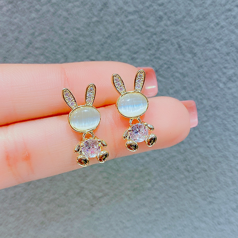 猫の目の石のウサギのピアスは甘くて可愛いです。