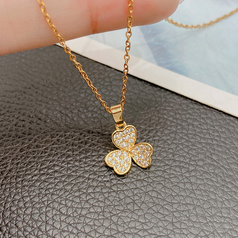 レトロな雰囲気がシンプルで、三つ葉のクローバーにジルコニアネックレスを入れています。