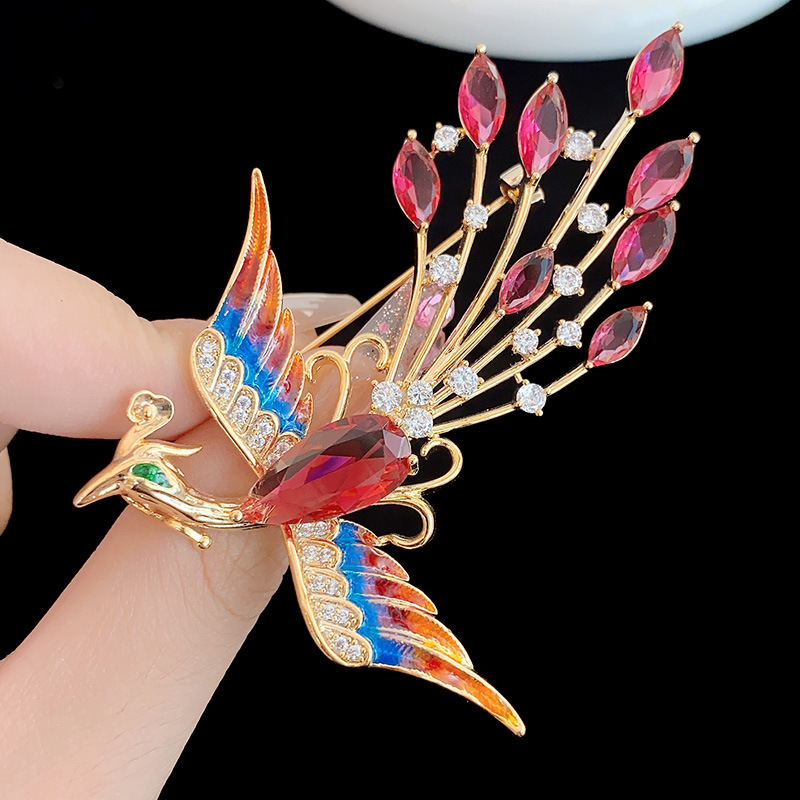 民族風エナメルカラーロングテール鳳凰ブローチ高級ファッションデザイン感国風胸花気質創意アクセサリー