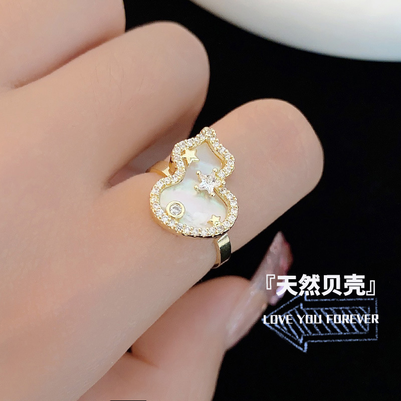 2024新型韓国版天然貝殻ひょうたん指輪女性の軽贅沢高級感オープンリングは指輪を調節できる