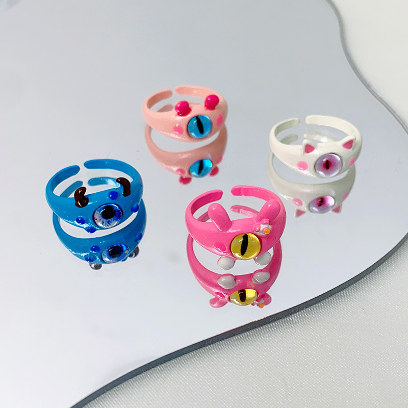 カラービーズ碧璽指輪女性ファッション個性食指戒シンプル小衆デザインファッション感冷たい風指環