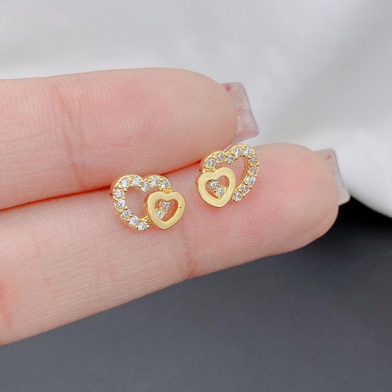 ミニは小さくて精巧で精巧な愛のイヤリングの女性S925純銀の針の双心のピアスのかわいい気質の韓国の大衆の耳飾り