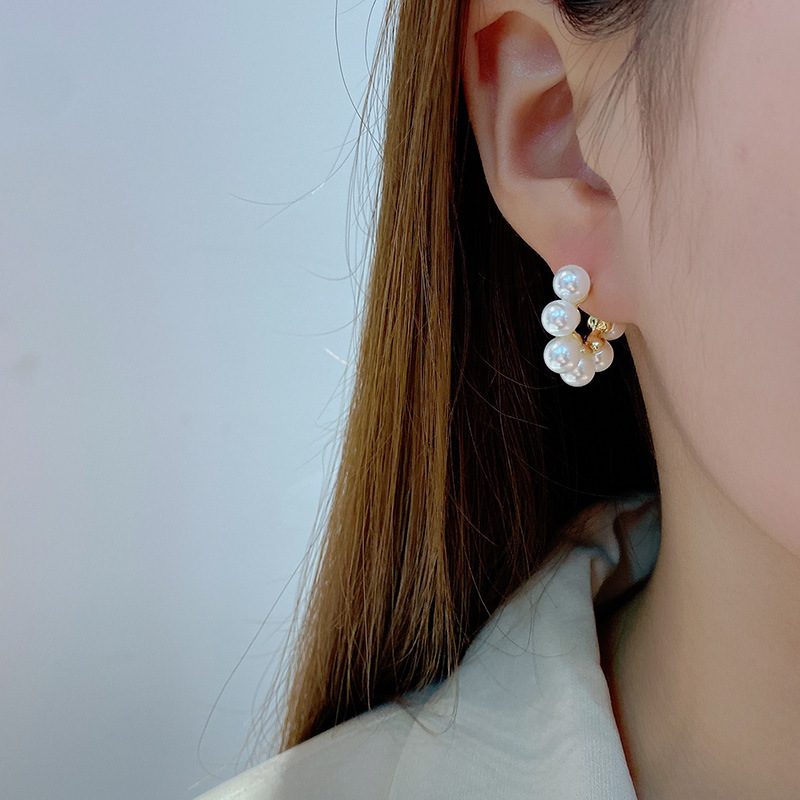 軽豪華ファッション真珠耳輪女S925純銀針優雅大気イヤリング高級感があります。
