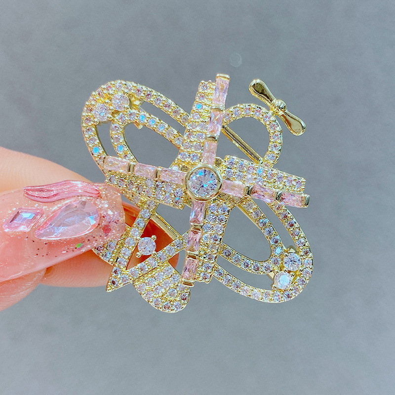 新潮回転可能な飛行機にジルコニアブローチを入れた女性の軽やかで贅沢な高級感のある襟元装飾ピン留めのスーツのアクセサリー