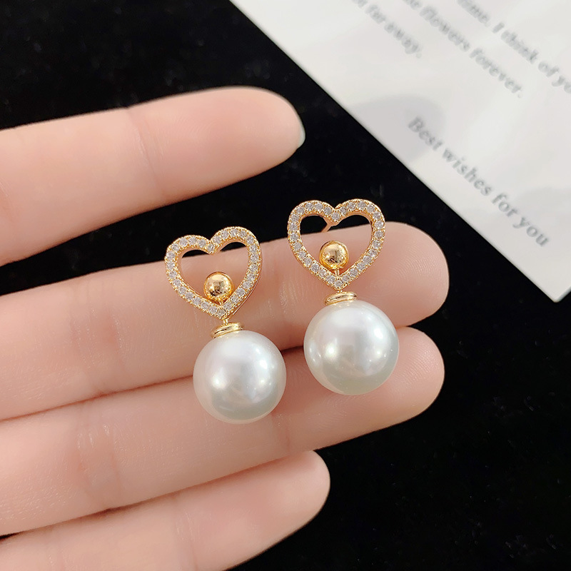 2つのデザイン愛ジルコン真珠イヤリングフランスの小さなデザイン感イヤリングファッション洗練されたイヤリング女性