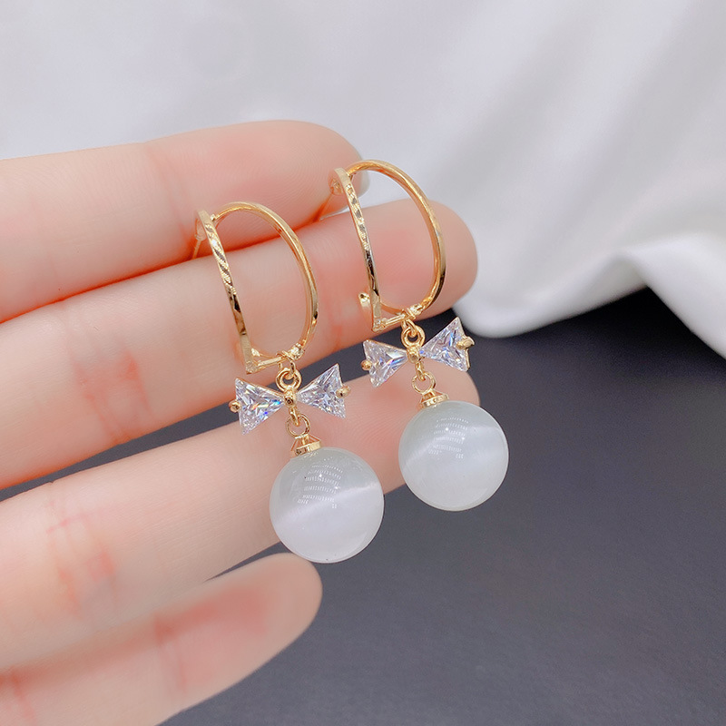 超きらきらと透き通った猫の目の石の蝶結びのイヤリングの女性の大衆の設計の高級感の耳飾りの気質の百合の個性のピアス