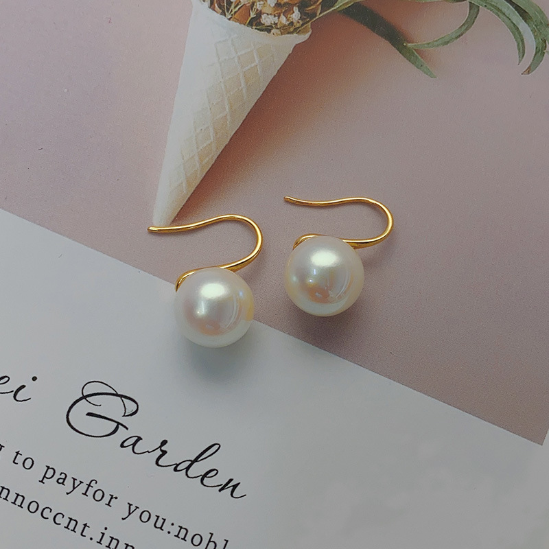 12MM大粒の日本のピンクの真珠のハイヒールのフランスの復古の軽い豪華な高級感のイヤリングのシンプルな百合の耳飾り