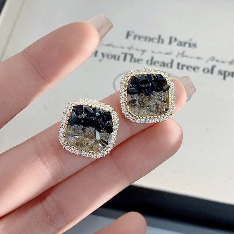 レトロで高貴な黒いグラデーションの四角のピアスの気質の小さい大衆の高級感の黒い灰色の水晶のダイヤモンドのイヤリングのイヤリングの女性