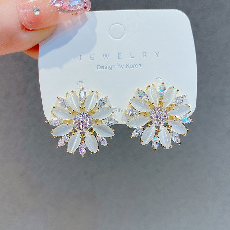 猫の目の石の太陽の花のピアスは小さくていっぱいのドリルの個性をはめ込んでいます。