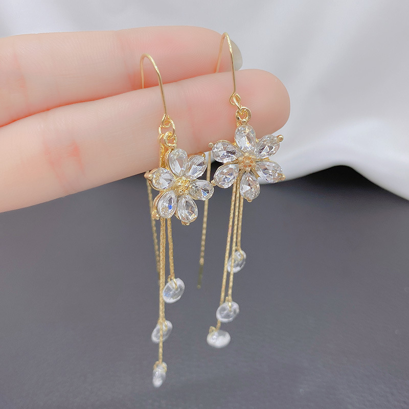 高級感水晶五弁花流蘇耳線2024新ファッション花耳ペンダント超仙独特イヤリング
