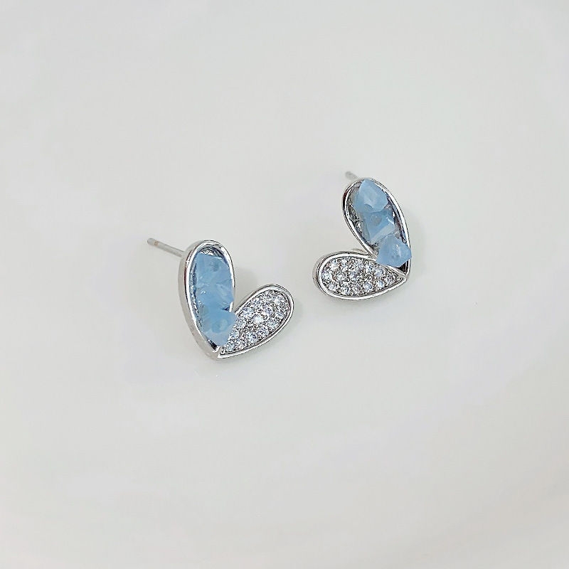 小さくて精巧で甘い砕けた水晶の青い愛のピアスの女性の2024の新型の爆発金のS925純銀の針のイヤリングの耳飾り