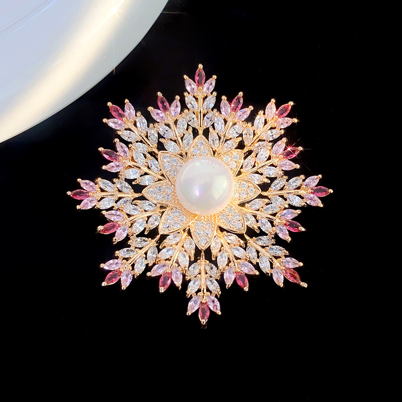 贅沢な超キラキラ真珠雪花ブローチデザイン感があります。