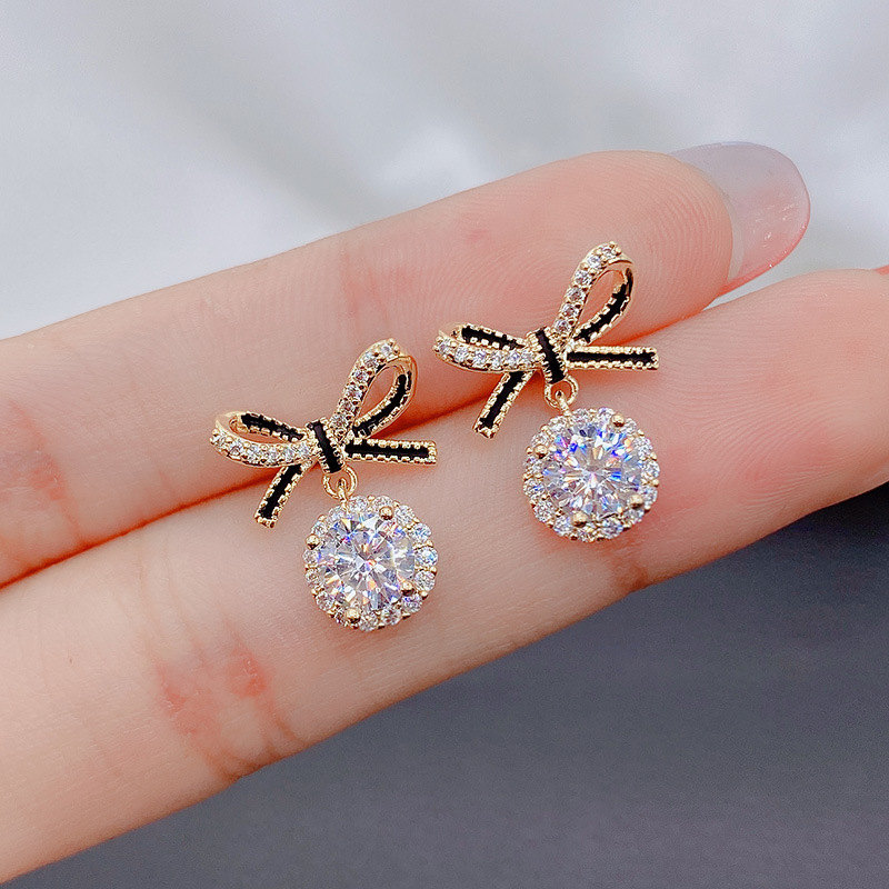S925純銀の針の蝶結びのジルコンのピアスの女性の気質は甘くて可愛いです。