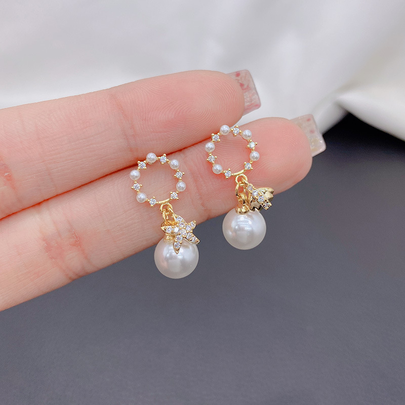 小衆は簡単にダイヤモンドの海星の円を入れて真珠のピアスの女性s 925純銀の針を入れてイヤリングの個性の洋気の耳飾りを配合します。