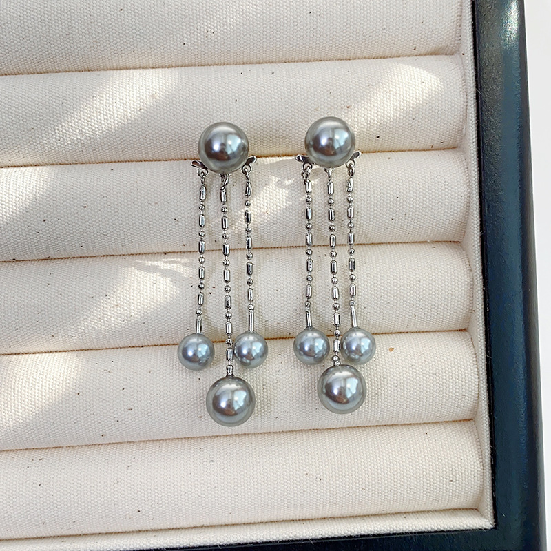 施家真多麻灰色真珠流蘇イヤリング2024新型ファッション気質軽豪華耳飾りロングイヤリング