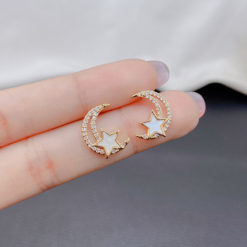 星の月のピアスの女性韓国の大衆のデザイン感のイヤリングのファッションの耳飾りs 925純銀の針は耳の穴がありません。