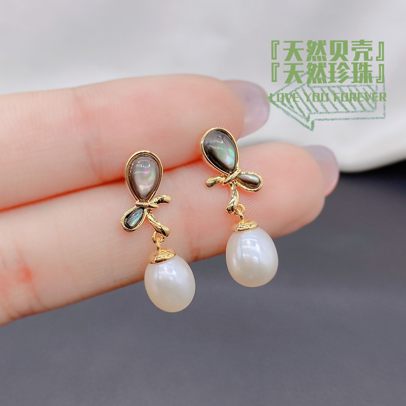 トレンド天然貝殻真珠蝶イヤリングフランスバロック甘いピアス