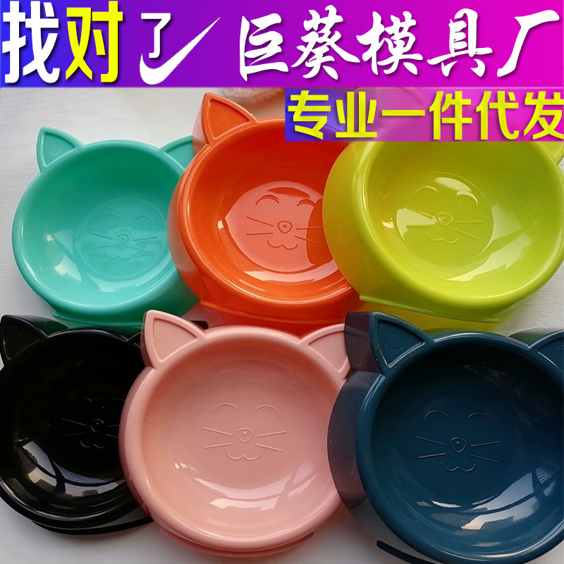 工場卸売猫の顔ボウル転倒防止プラスチック滑り止めマット猫ボウルペット用品犬猫漫画ペットボウル