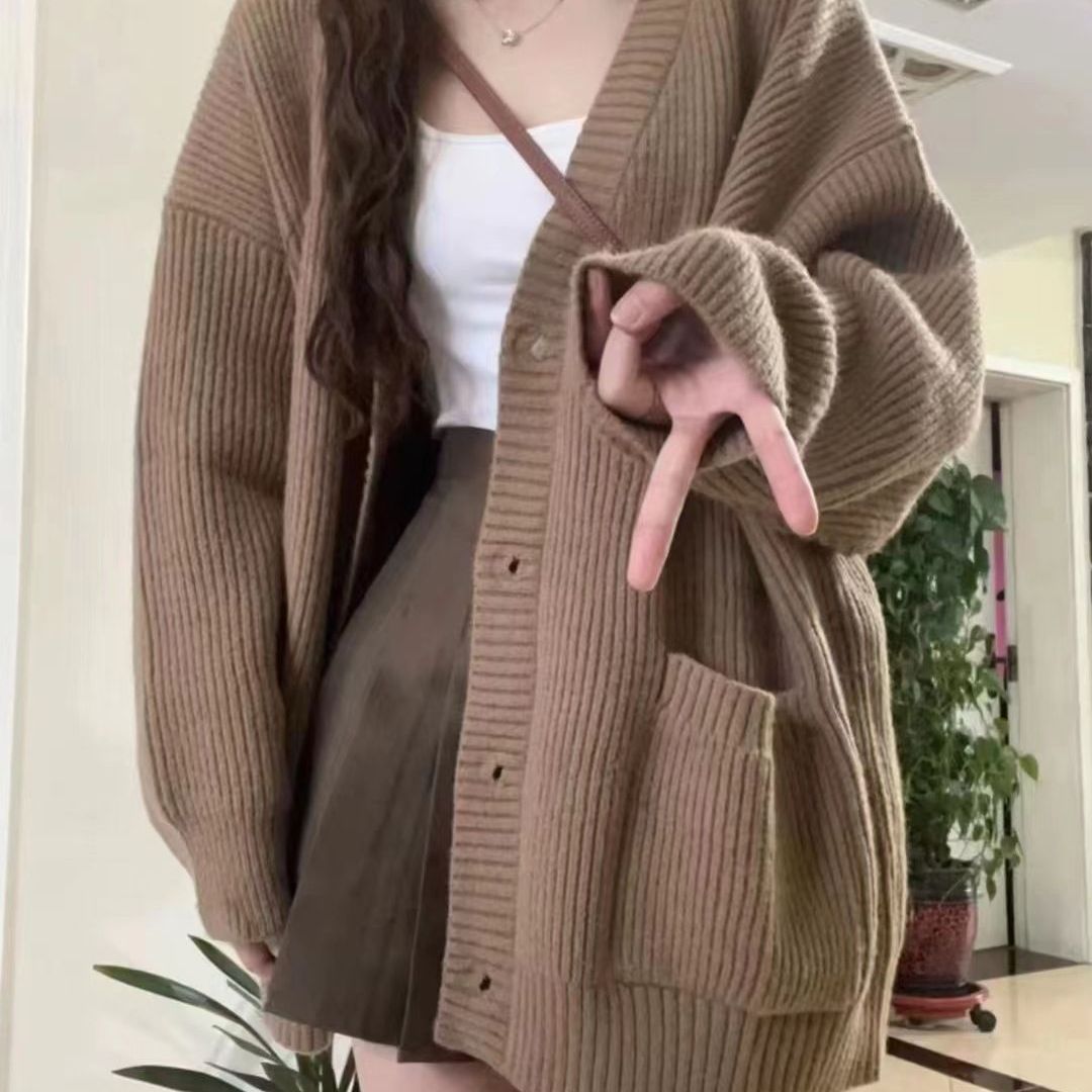 2025春装新款中长款针织衫外套女慵懒风宽松韩版百搭网红毛衣开衫