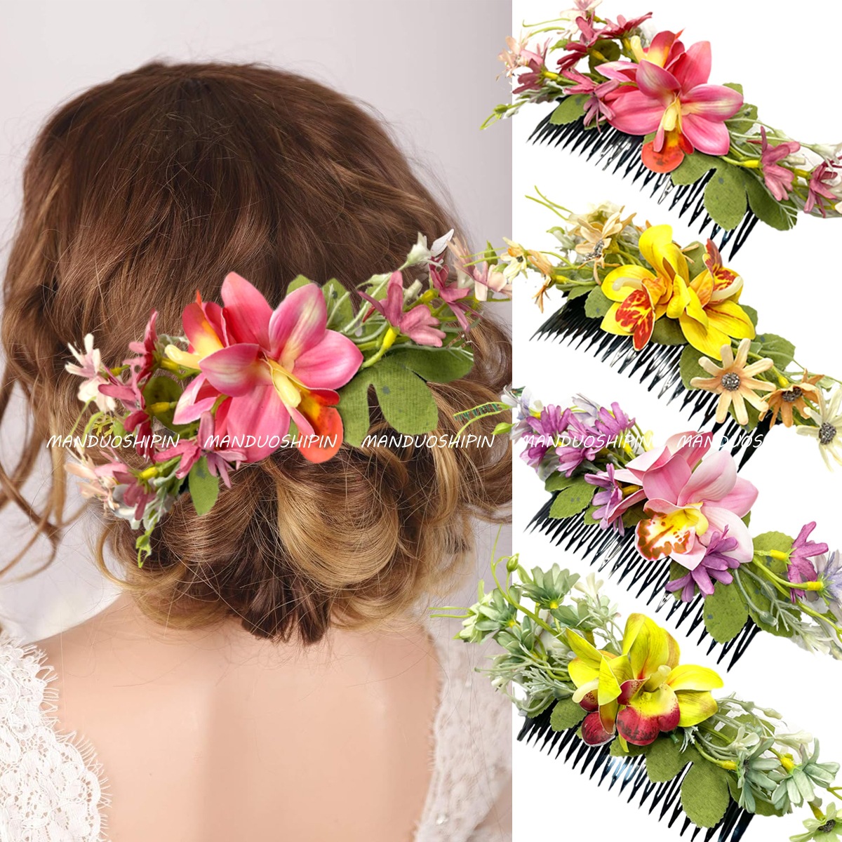 国境を越えた新しい森の女性系の蘭の髪の櫛のシミュレーションの花の休暇旅行の写真は花嫁の花嫁の髪飾りを飾ります。