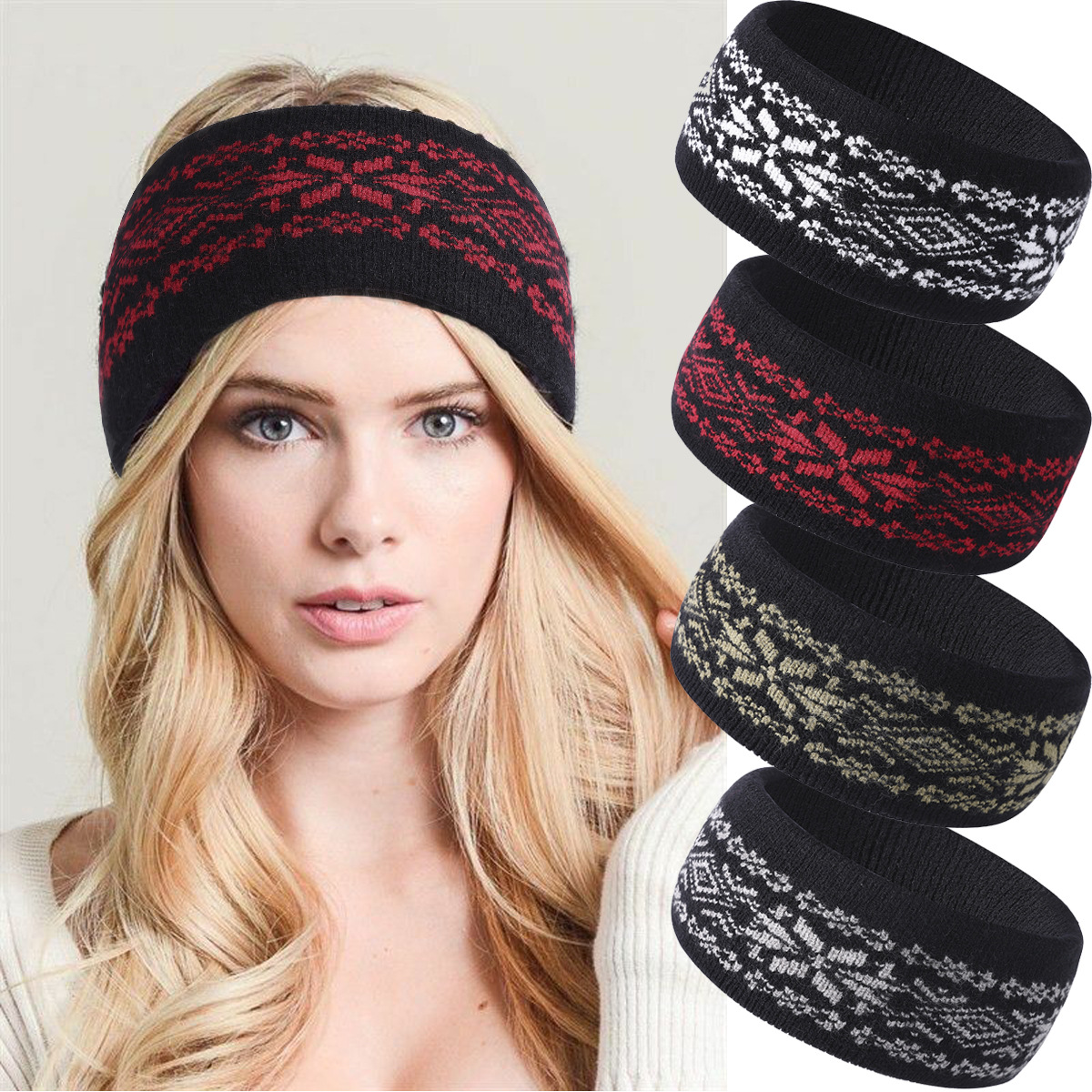 国境を越えた新しいニットヘアバンドのレトロなジャカード気質防寒ヘッドカバー黒のワイドファッション毛糸ヘッドスカーフ卸売り