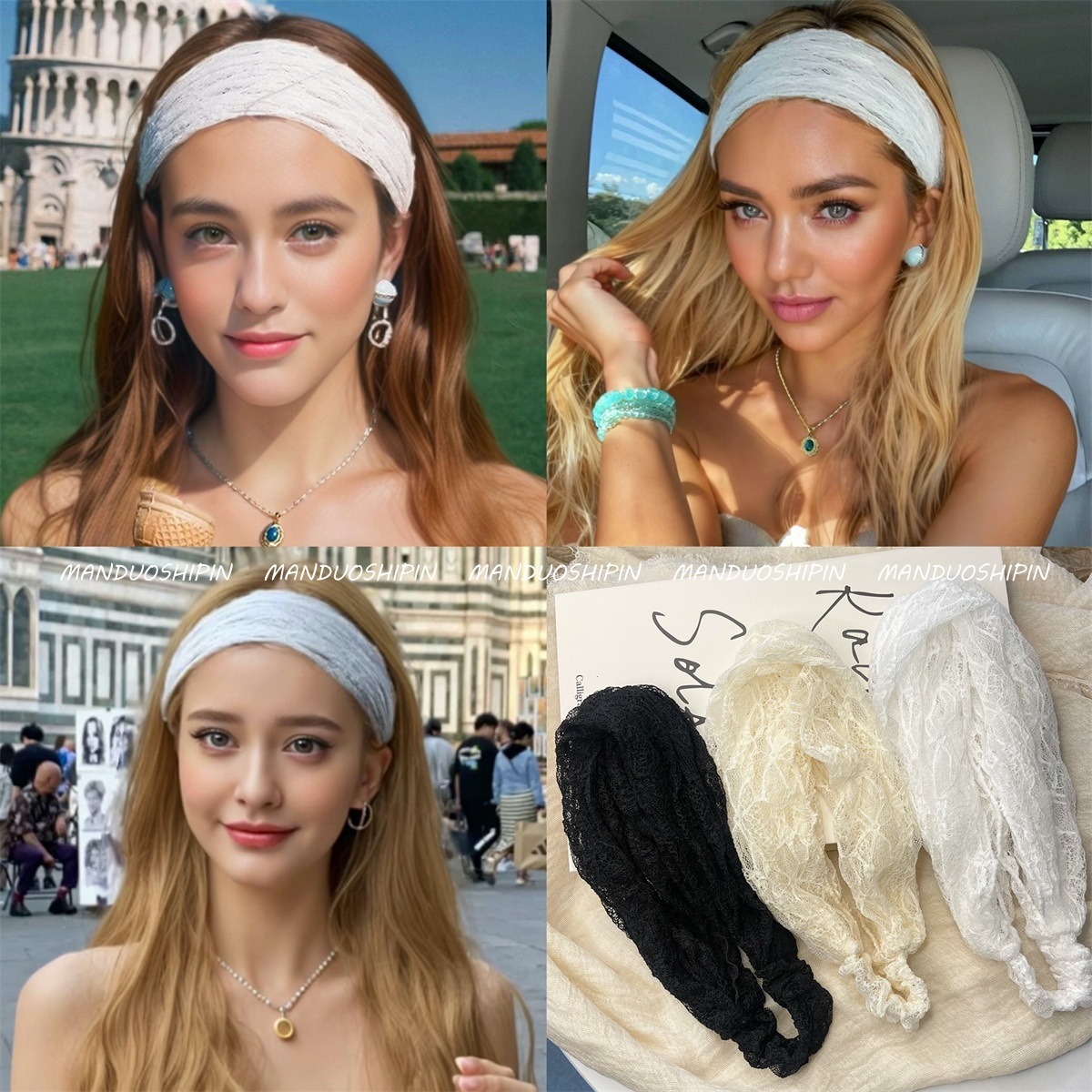 国境を越えた売れ筋の多用途レース無地ヘッドバンド、ファッショナブルな女性用つば広ターバン、中空ヘッドバンド、ヘアアクセサリー、在庫あり