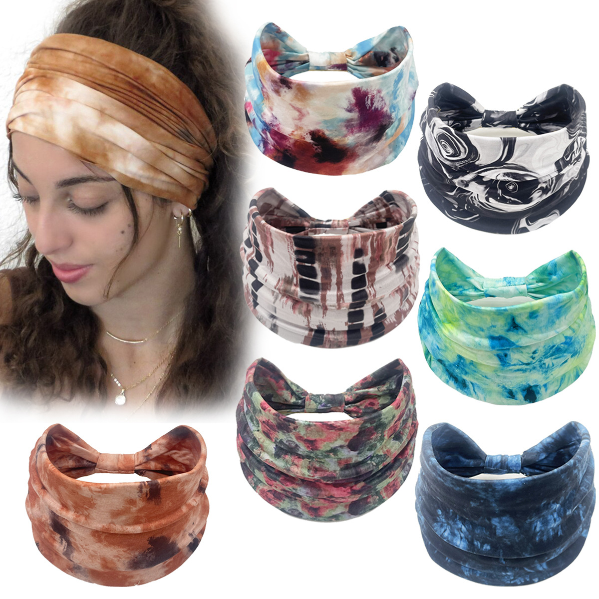 Amazonクロスボーダー新プリント医療用ヘアバンド、ボタン付き弾性ヘアバンド、ワイドエッジ弾性吸汗ヘッドバンド