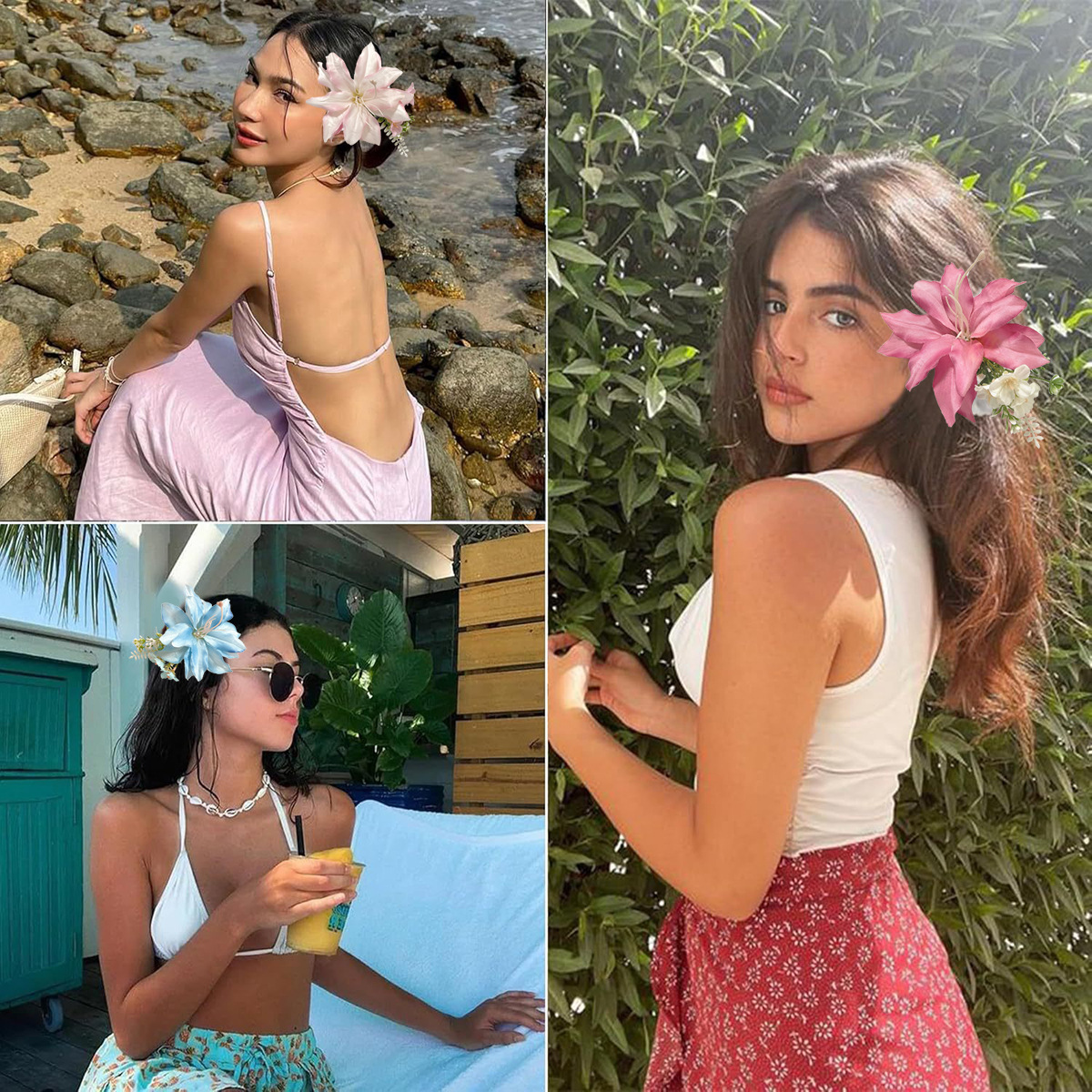 国境を越えて人気のある2つの花のヘアピンボヘミアンのリゾート風ヘアピンの写真を撮る髪飾りの派手な花のサイドクリップ