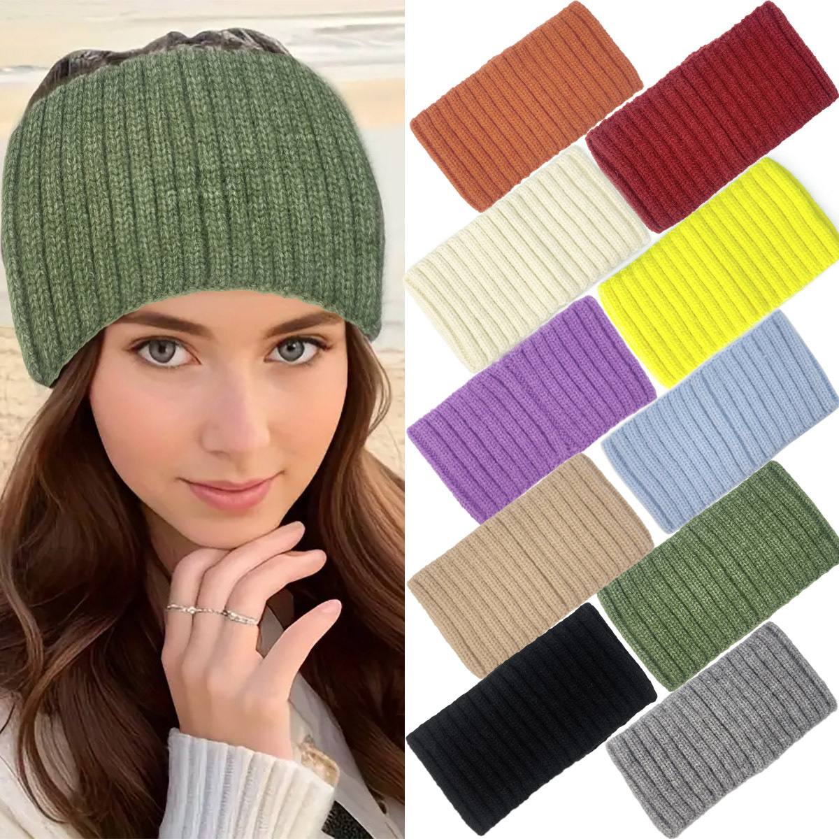 秋冬純色メリヤスヘアバンド縦紋坑条防風運動ヘアバンド保温弾力広縁毛糸ヘッドバンド女