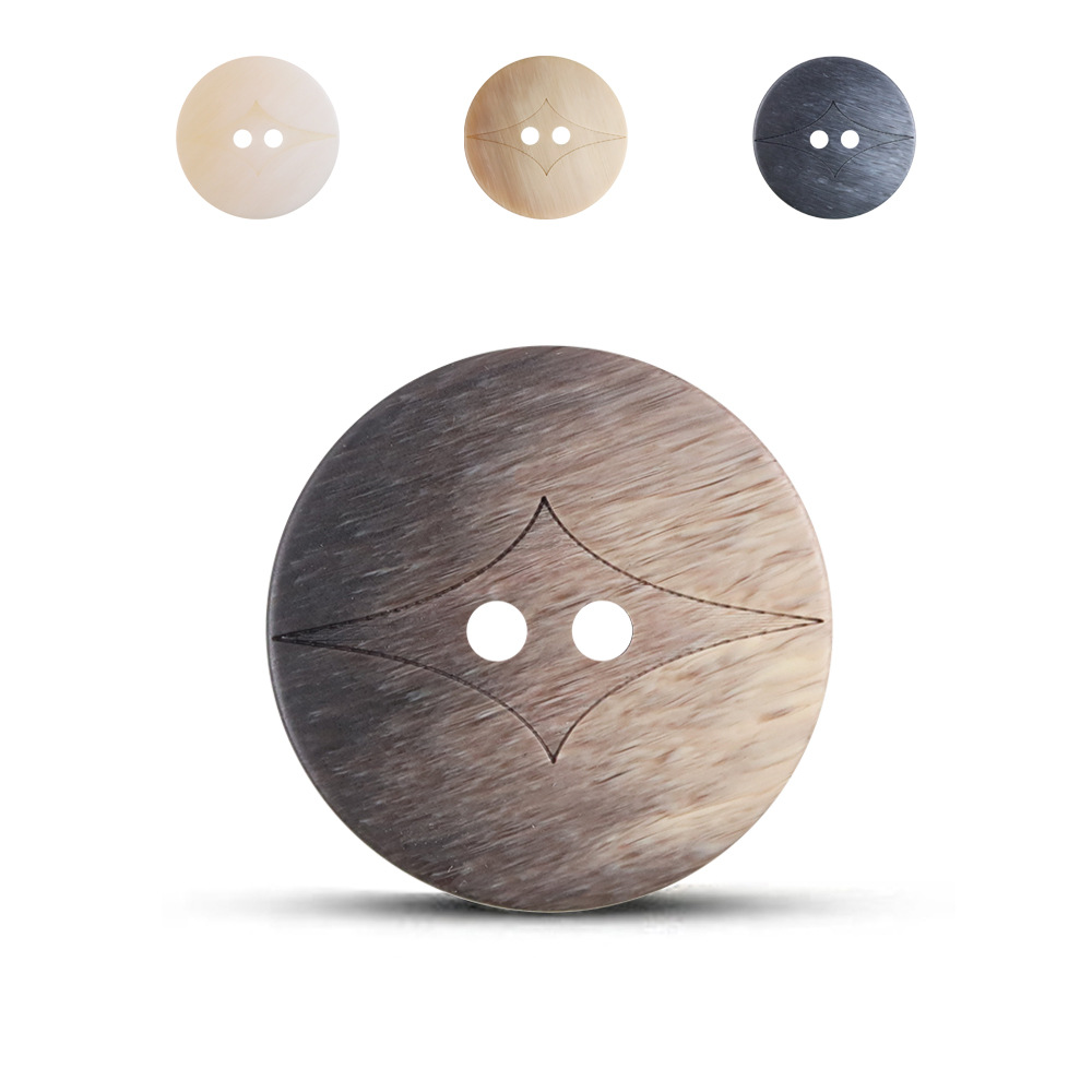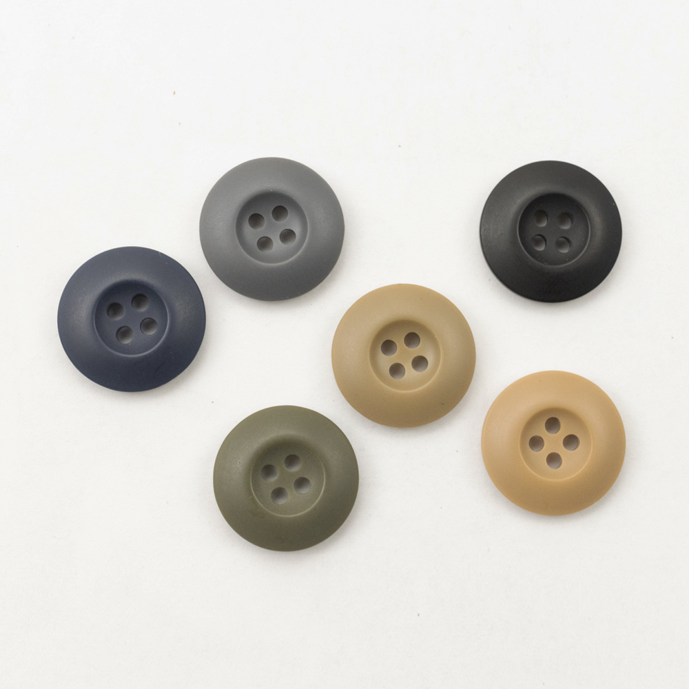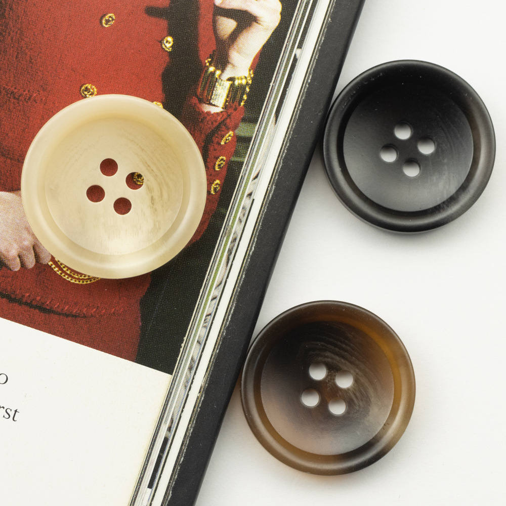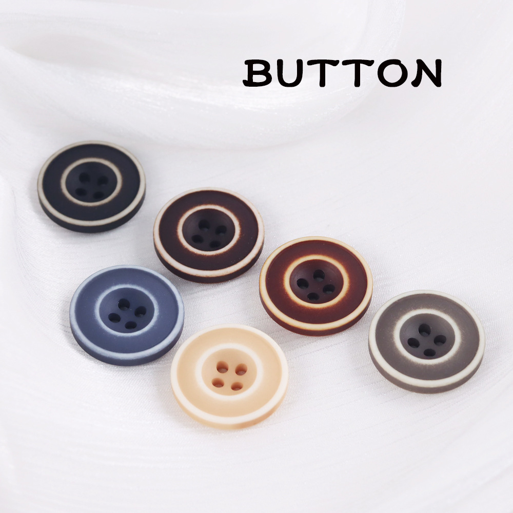志とレトロなカジュアルなグラデーションカラーの2つの目の樹脂ボタンのデザイン感があります。