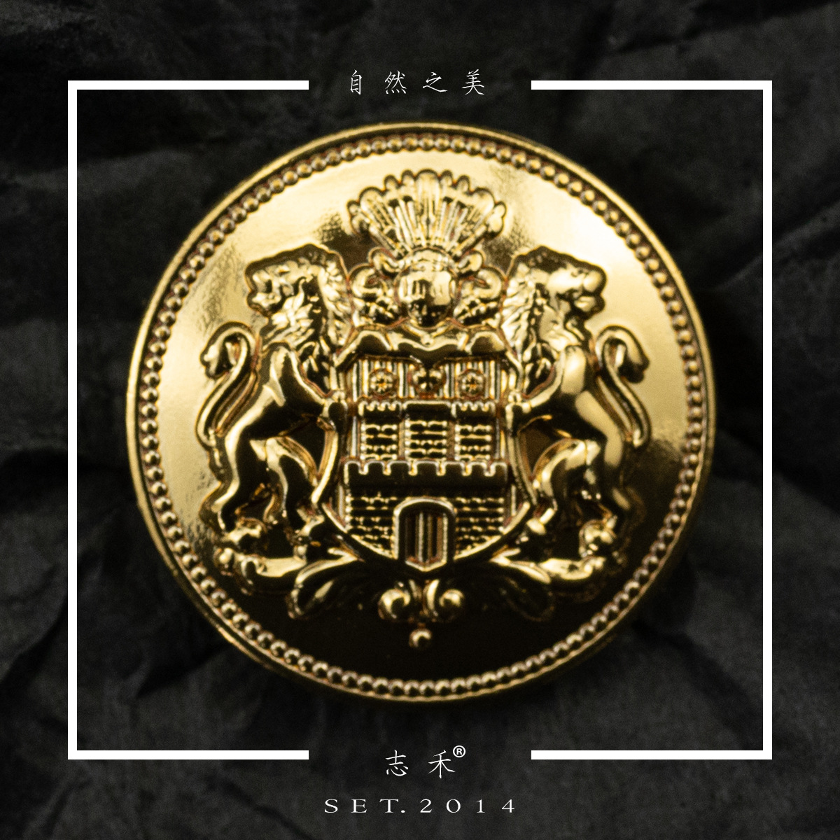 志禾(志和) のしわの辺の経典の四眼の金属のボタンの復古は金色のスーツの風衣のコートの大きい服のボタンをまねます。