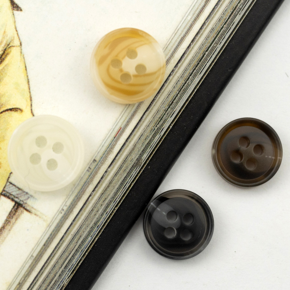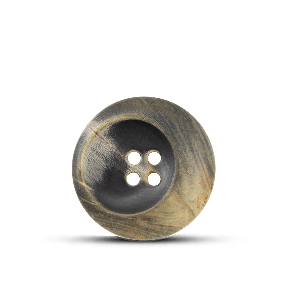 明るい黒いスーツのコート樹脂ボタンは牛の角の紋様の紺色の褐色のセーターの毛のコートのボタンをまねます。