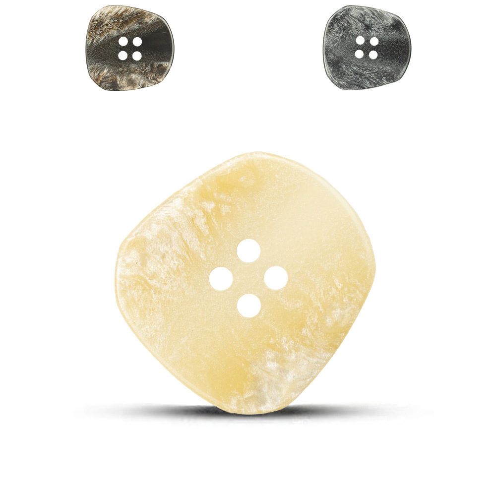 白いサーフェスの不規則なベージュのセーターのニットの樹脂のボタンは貝殻の婦人服のコートの毛の装飾のボタンをまねます。