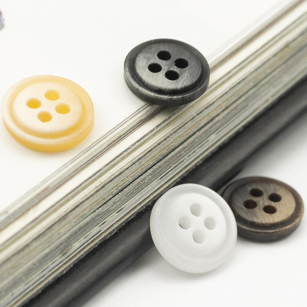黒綿麻文芸シャツ真牛角ボタン椀型両眼カーディガン春装コート工装ボタン12.5mm