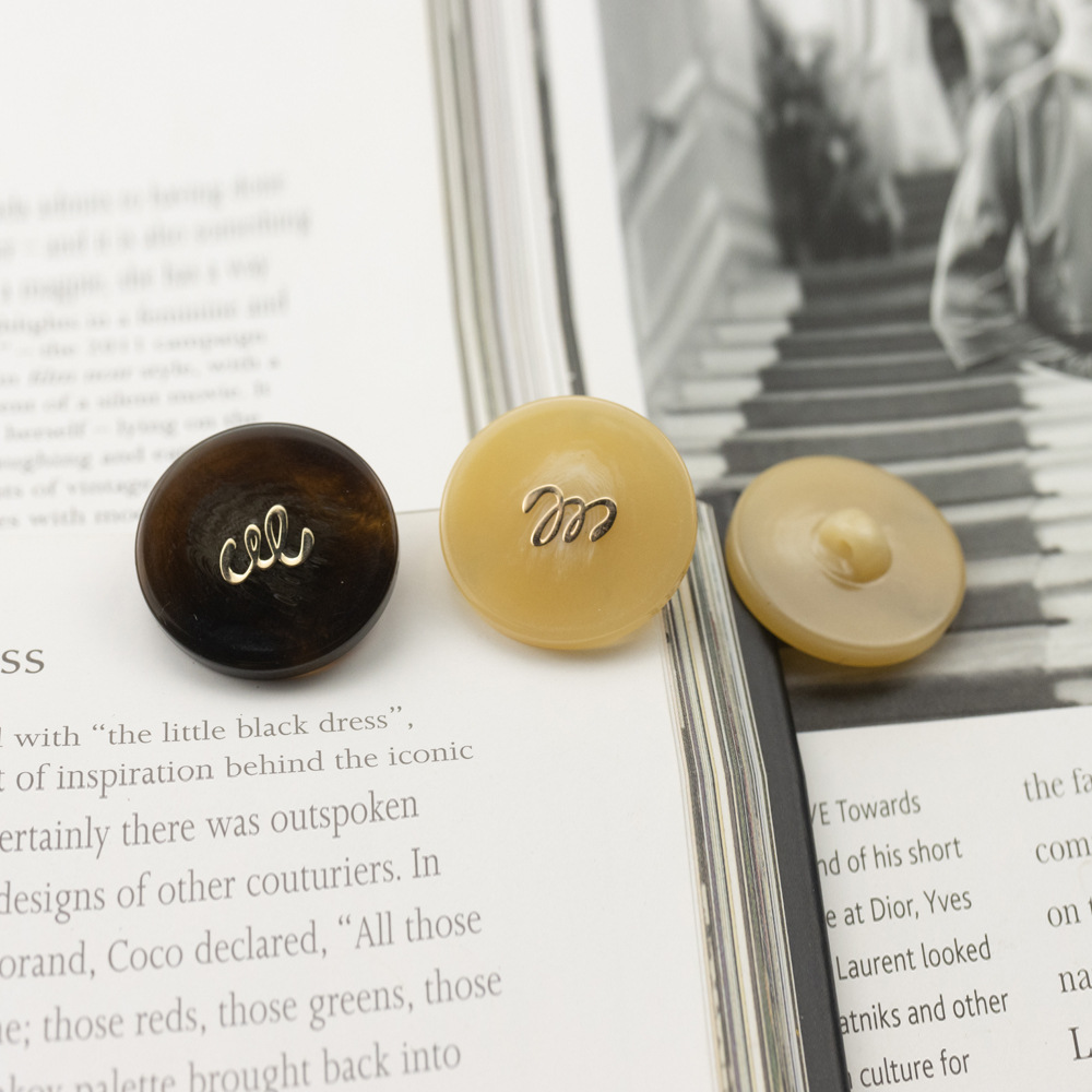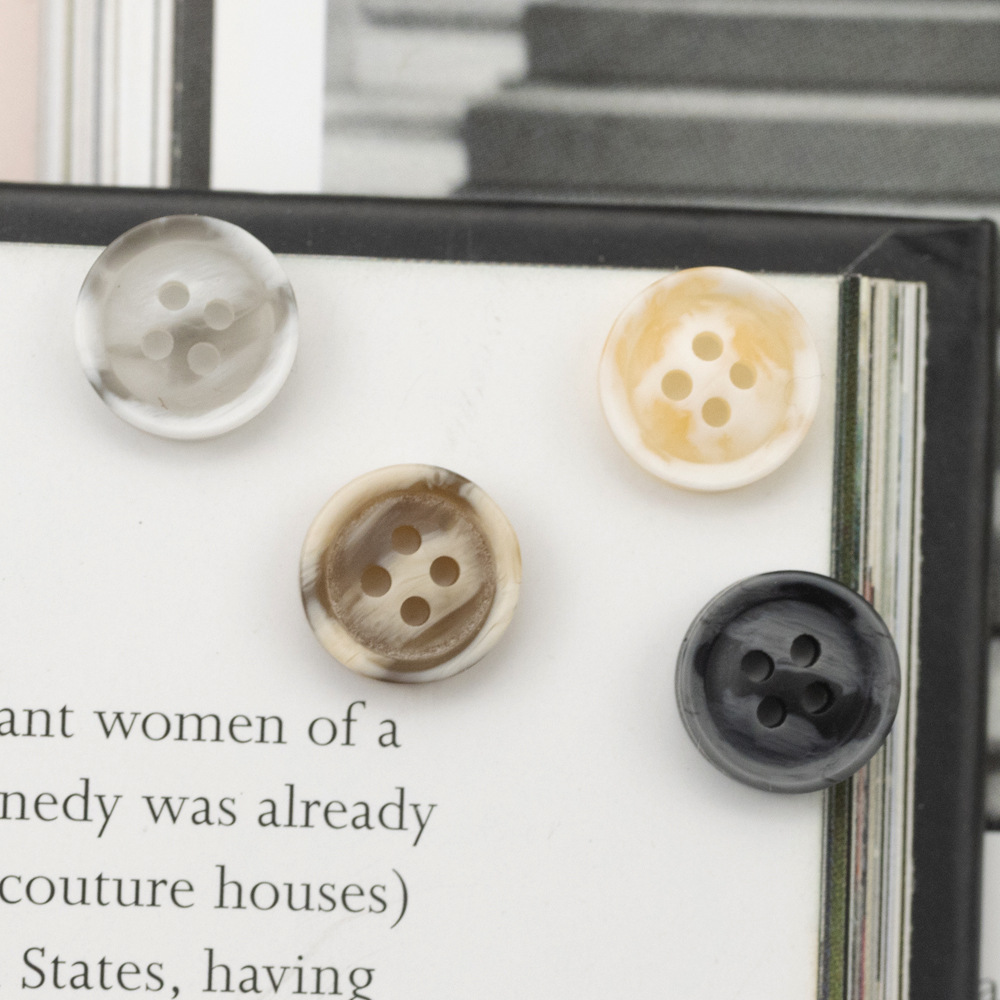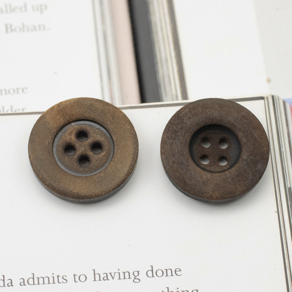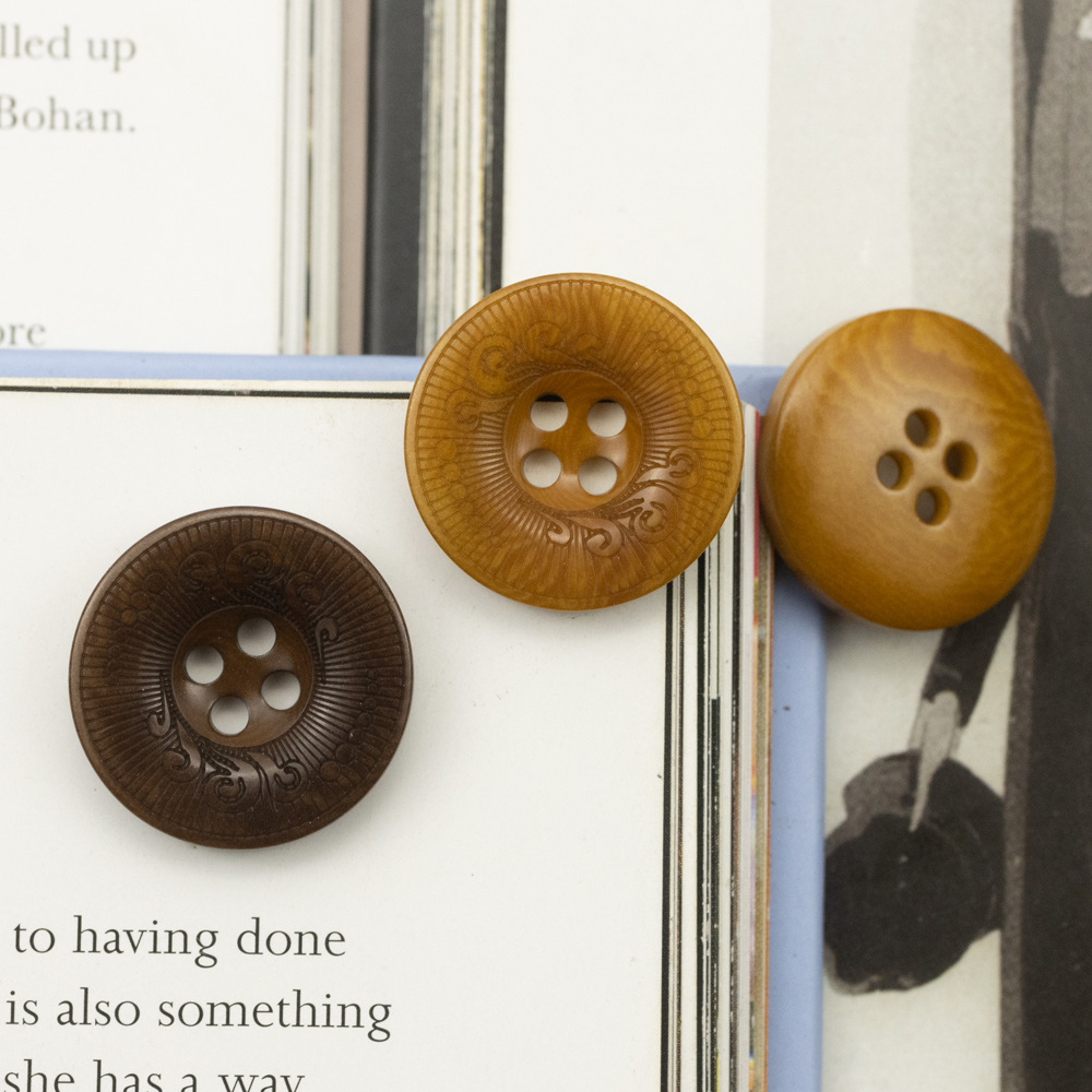 ボウルタイプ米白色レトロ女装セーター樹脂ボタン四眼円形米黄色木目コート毛ボタン