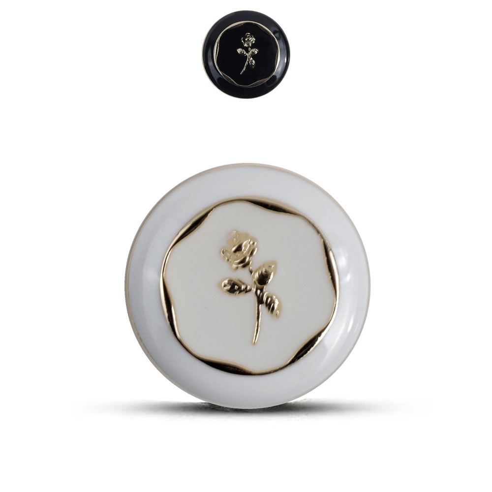 レトロ風金属ボタン花飾りボタン黒コートセーター白レディースニット高足ボタン
