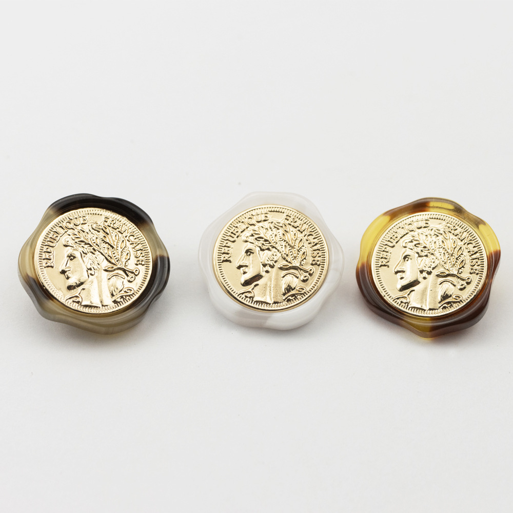 樹脂の不規則な人の顔の金色のベースのボタンのシャツのトレンチコートのボタン