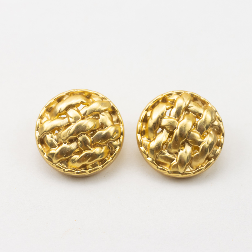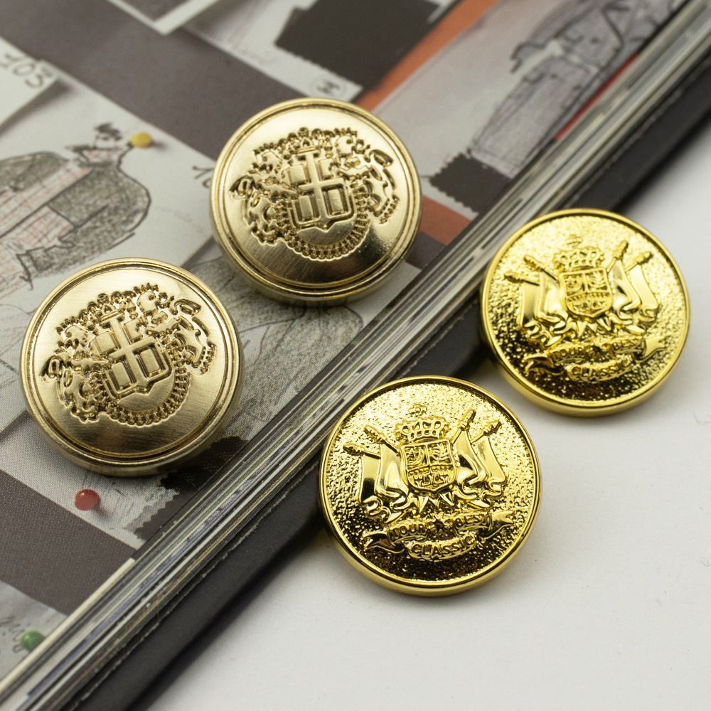 金属の透かし彫りの丸いボタンのレトロなレリーフは女性のスーツのコートの手縫いを掛けます。