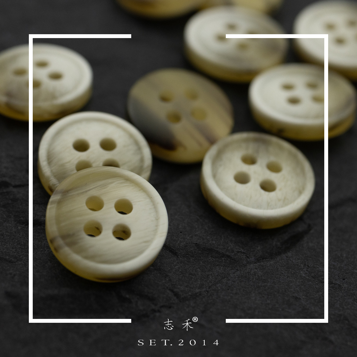 細い辺の浅いカーキの米の黄色の英倫の高定のスーツのセーターの果実のボタンの天然のパームシェルの材質はボタンを掛けます。