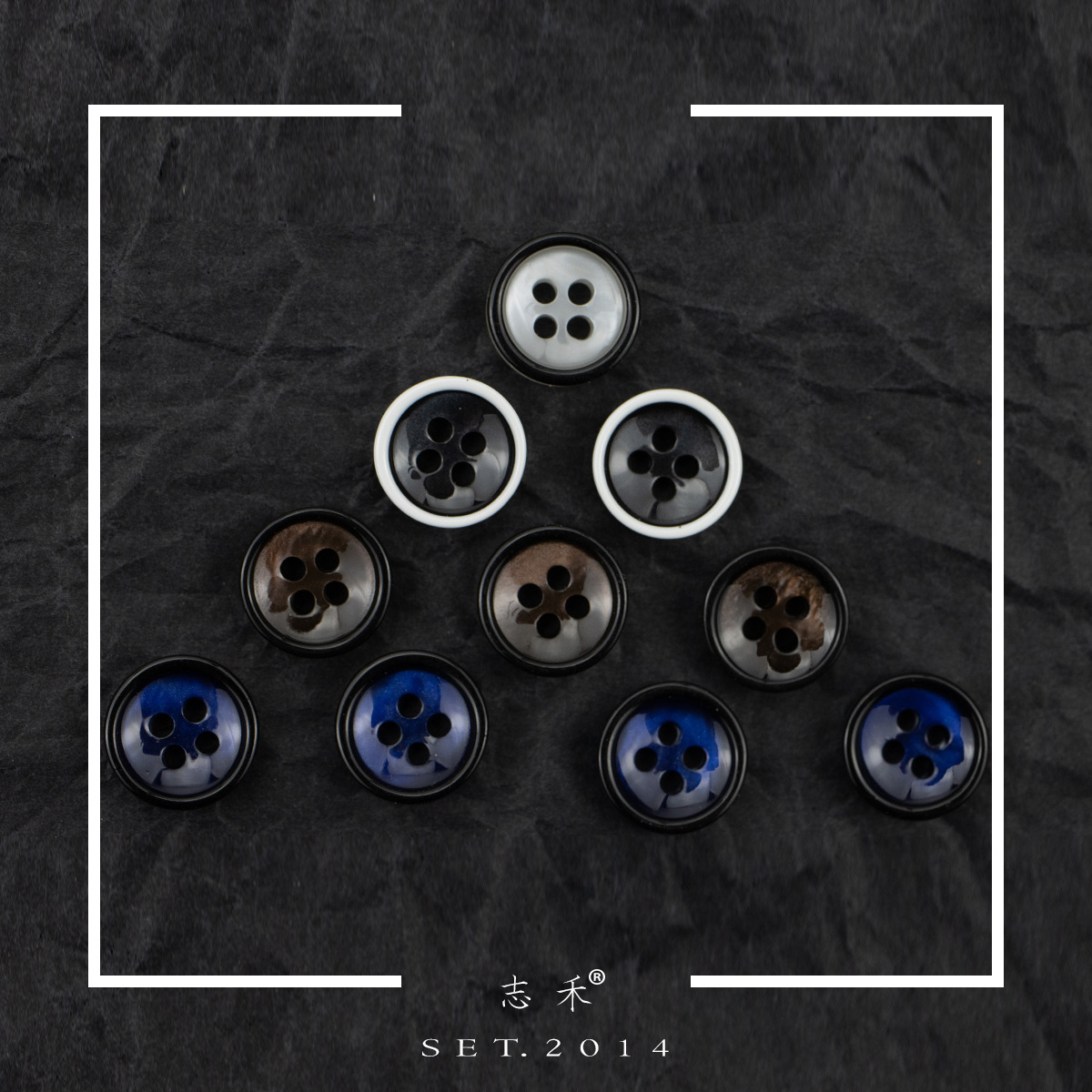 碗型の波紋は貝殻の深い青いコーヒー色の黒い白いビジネスのレジャーのシャツの樹脂のボタンのpoloボタンをまねます。