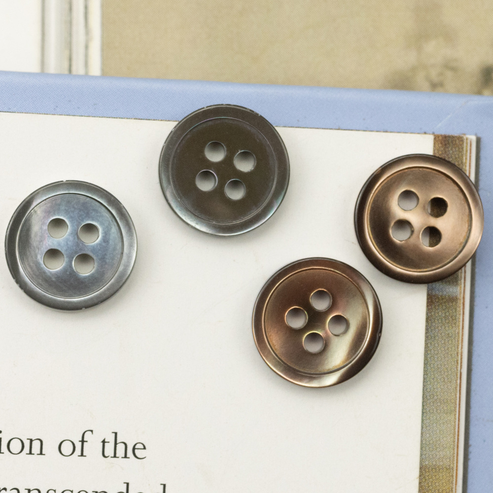 細い縁の紺色のシャツのボタンはコーヒー色のレトロなシフォンのシャツのタロットの貝殻のボタンの11.5mmをボタンします。