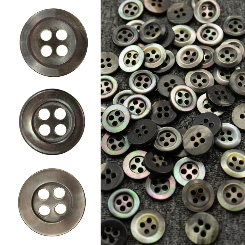 ワイドラウンド黒蝶貝シェル高定シャツ貝殻ボタン文芸カーディガン半袖polo天然貝殻ボタン