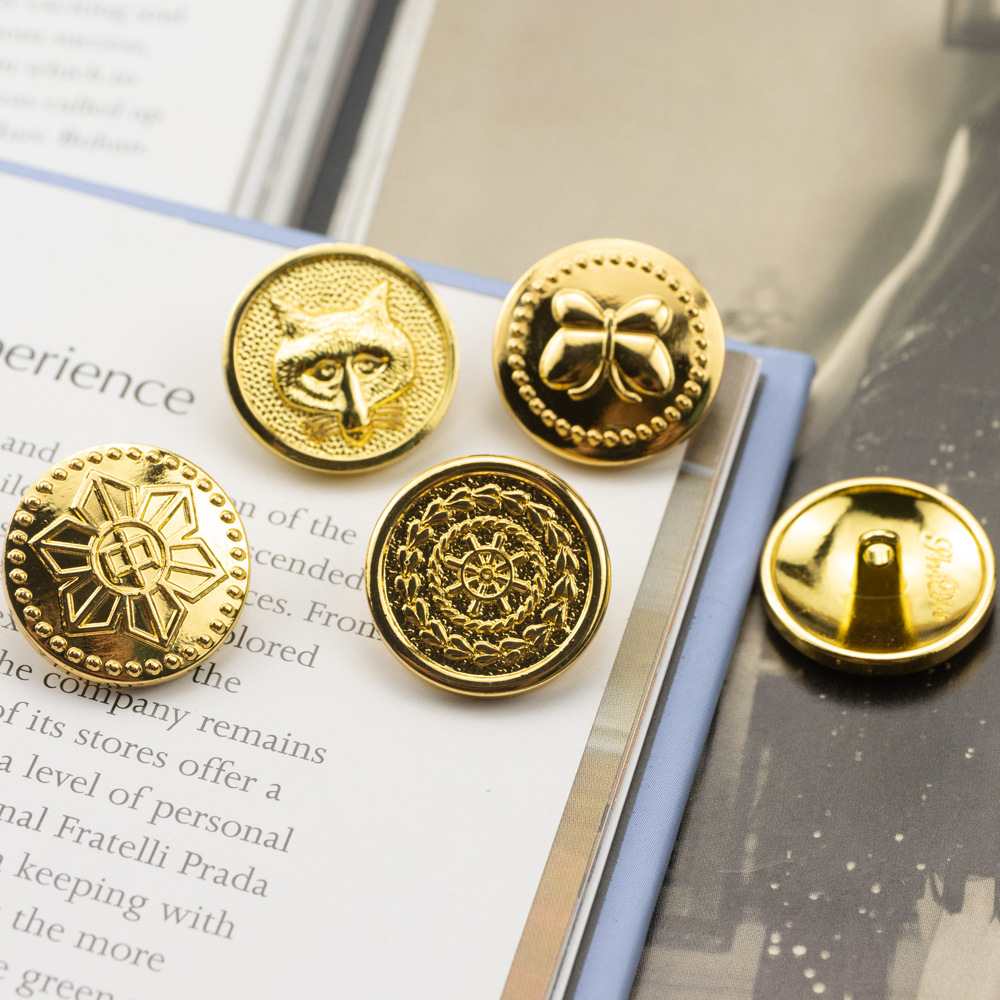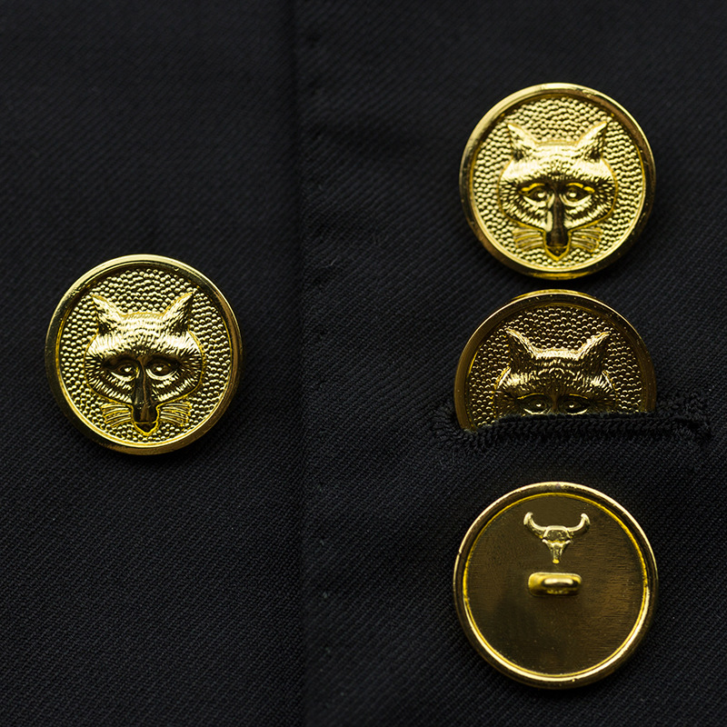 亜煕ボタンのキツネの頭は金色のレジャーの狩猟の要素のスーツの制服のコートの金属のボタンをまねます。