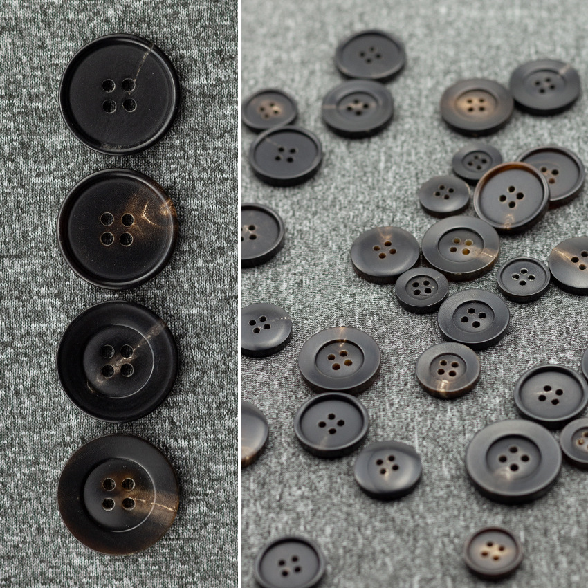 ワイドエッジの黒いスーツの風衣は本当に牛の角のボタンのボタンの細い辺の濃いコーヒー色のセーターのスーツの風衣の牛の角のボタンです。