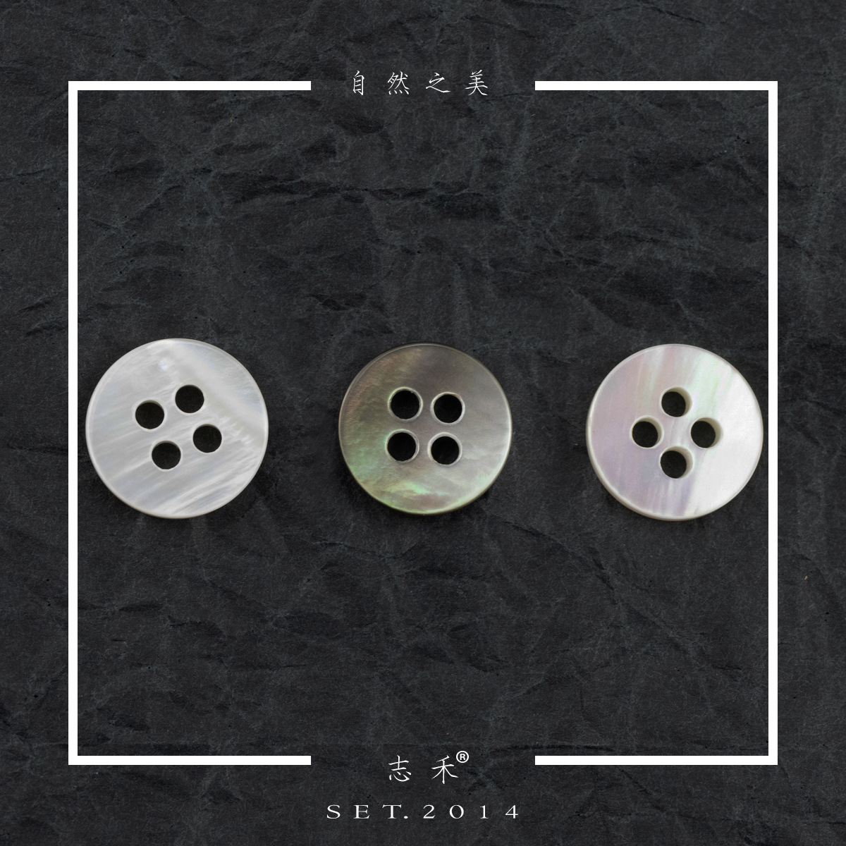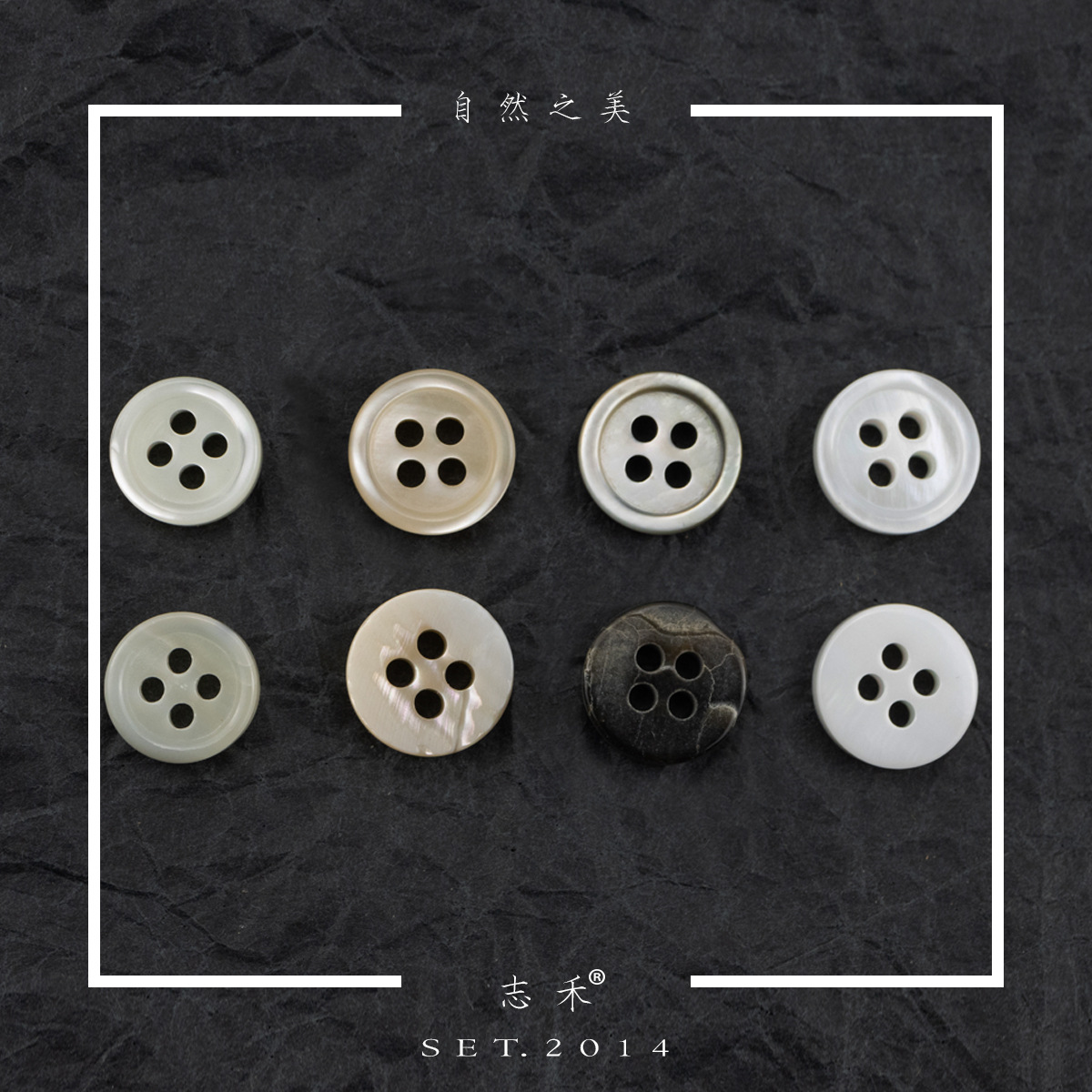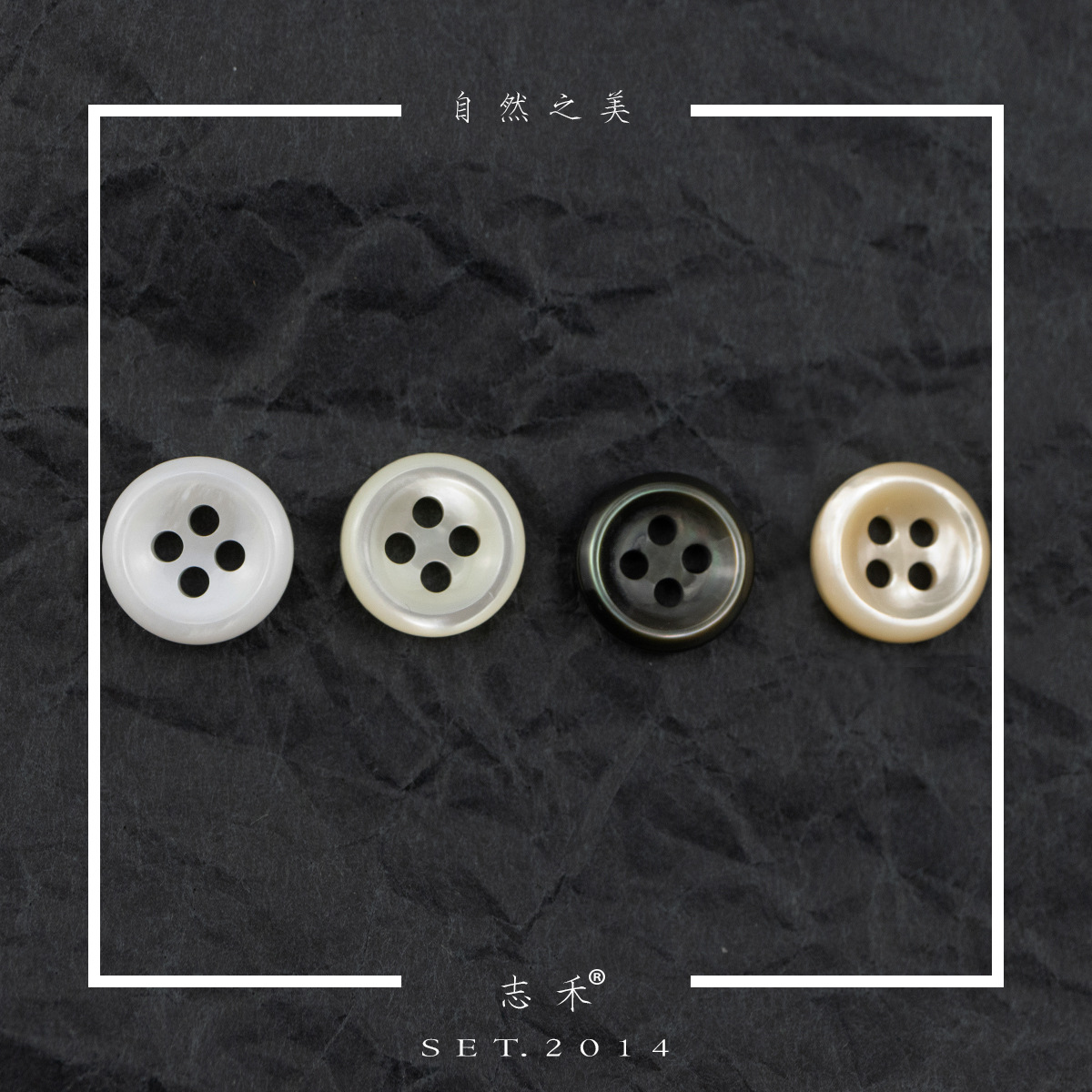 厚い米白色タロ貝殻シャツボタン天然四眼黒蝶貝高定シャツボタンボタン