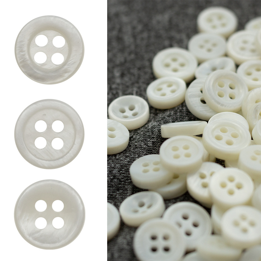 ダブル平面四眼淡水貝殻白いシャツカーディガンボタン天然白蝶貝tシャツシャツボタン